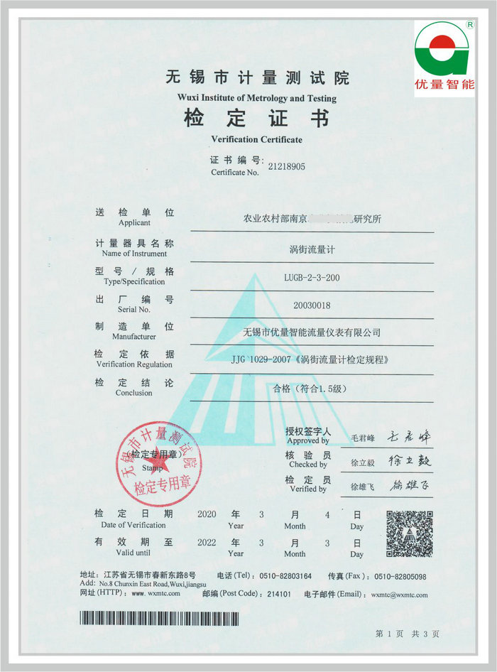 無錫優(yōu)量精品級(jí)渦街流量計(jì),每套帶第三方檢測(cè)證書;優(yōu)量流量計(jì),就是不一樣 |